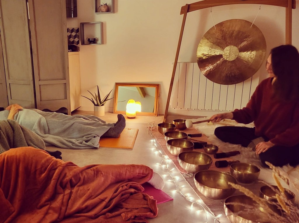 Relaxation par les sons, véritable bulle de détente et relaxation apaisante grâce aux doux sons et aux vibrations profondes et enveloppantes des bols tibétains
