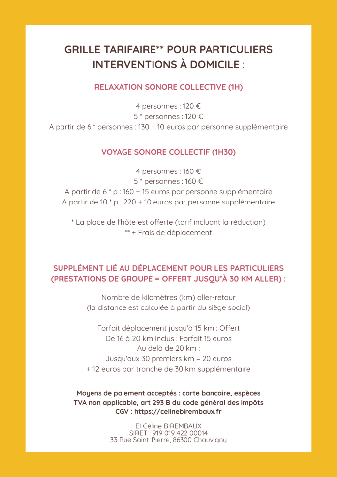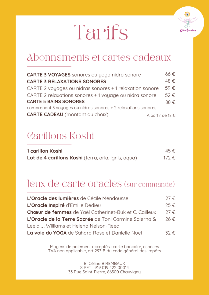Les abonnements (carte de relaxations ou voyages sonores) sont valables uniquement chez YogaSunrise Poitiers.